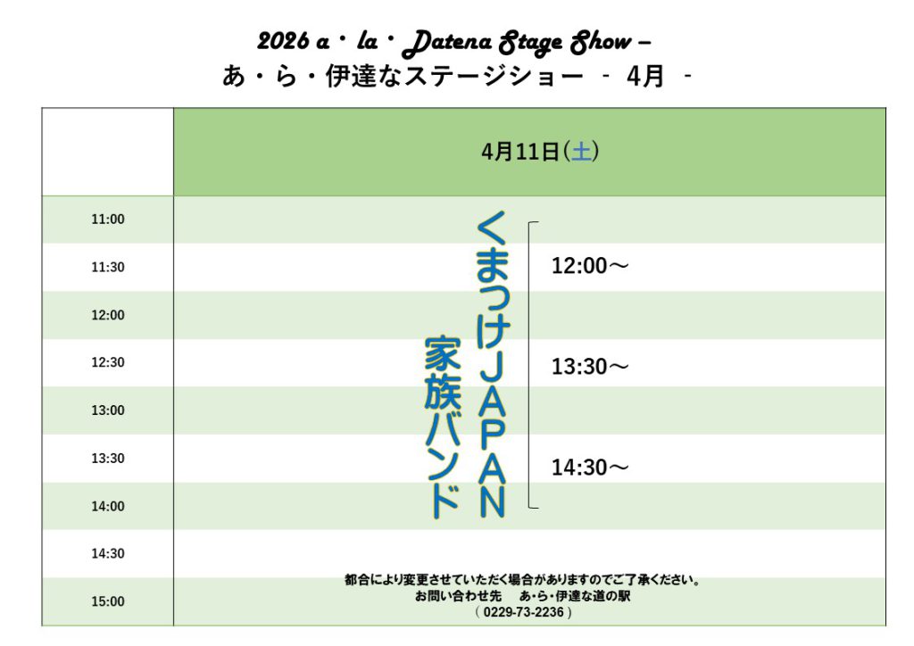 あ・ら・伊達な道の駅では、週末のお楽しみとしてステージイベントを開催しております。